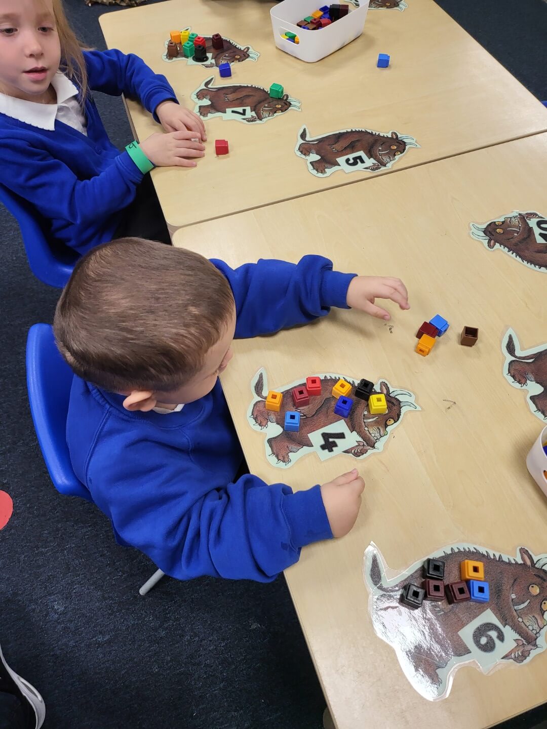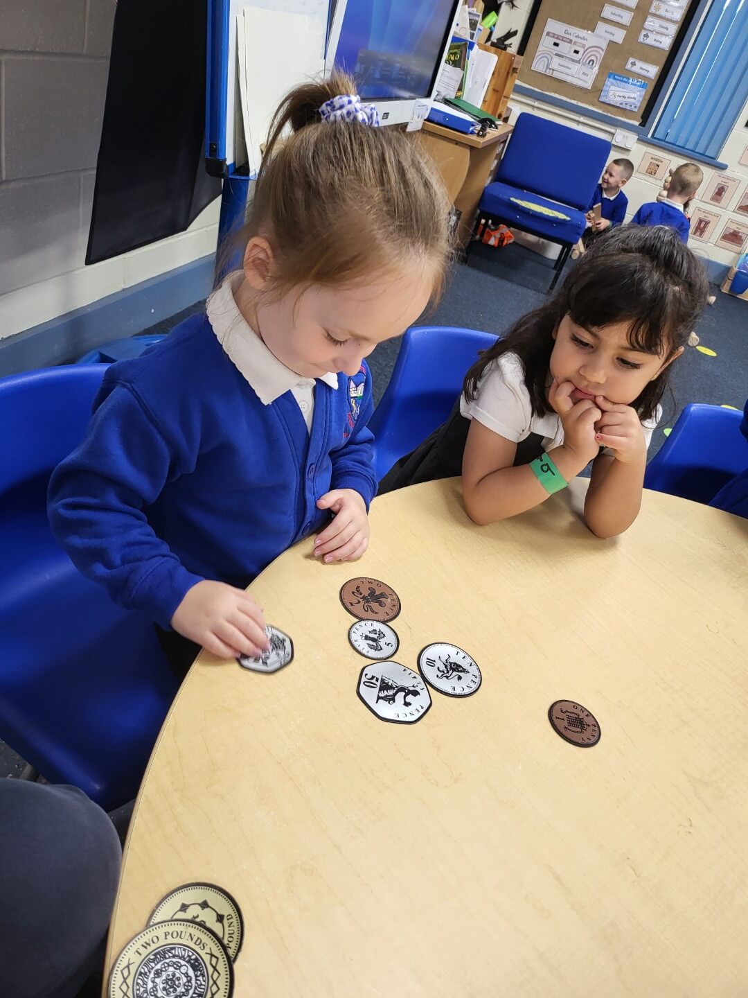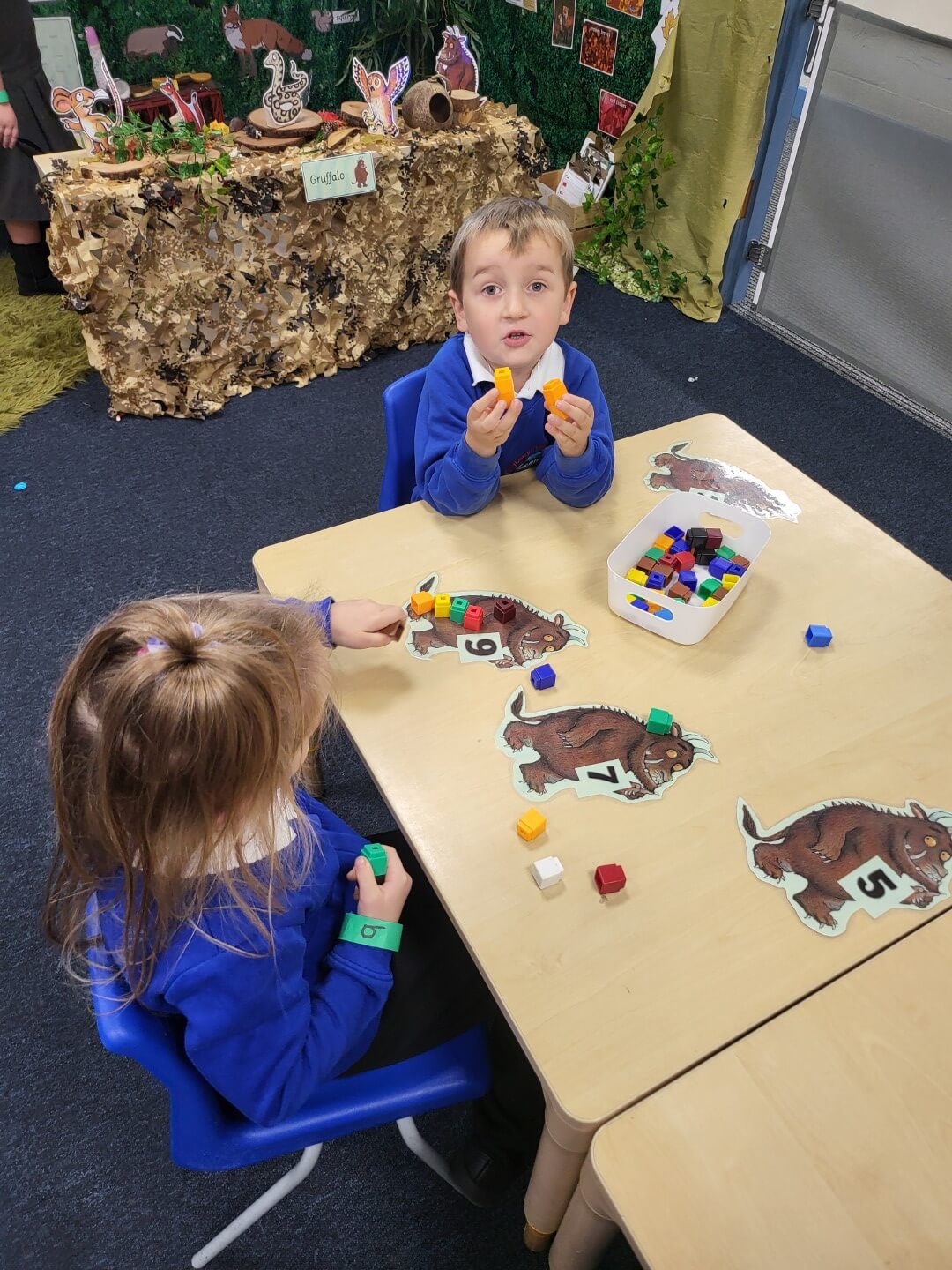 In literacy, the children have been retelling this week’s story, The Gruffalo, practising sequencing, recalling key events, and using their imagination to bring the story to life. Meanwhile, in Maths, they have been getting familiar with money, exploring different coins and learning how they are used in everyday situations.
