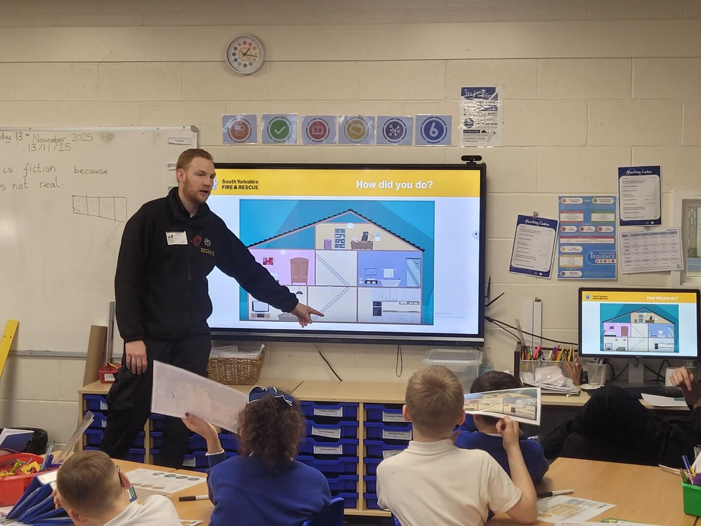 The children asked some fantastic questions, and were super engaged – a big thank you to the South Yorkshire Fire and Rescue Service for visiting and helping the children learn how to stay safe!