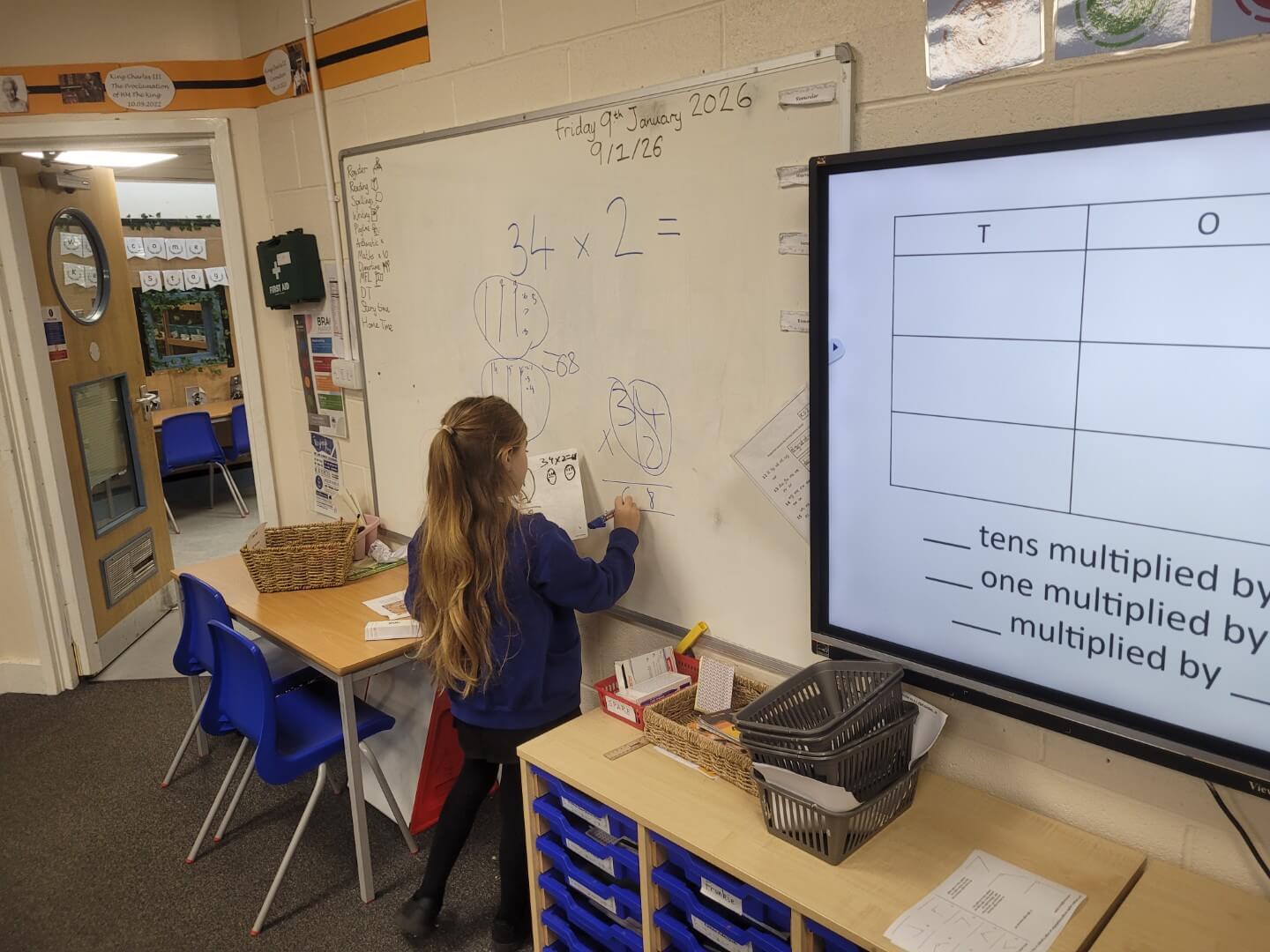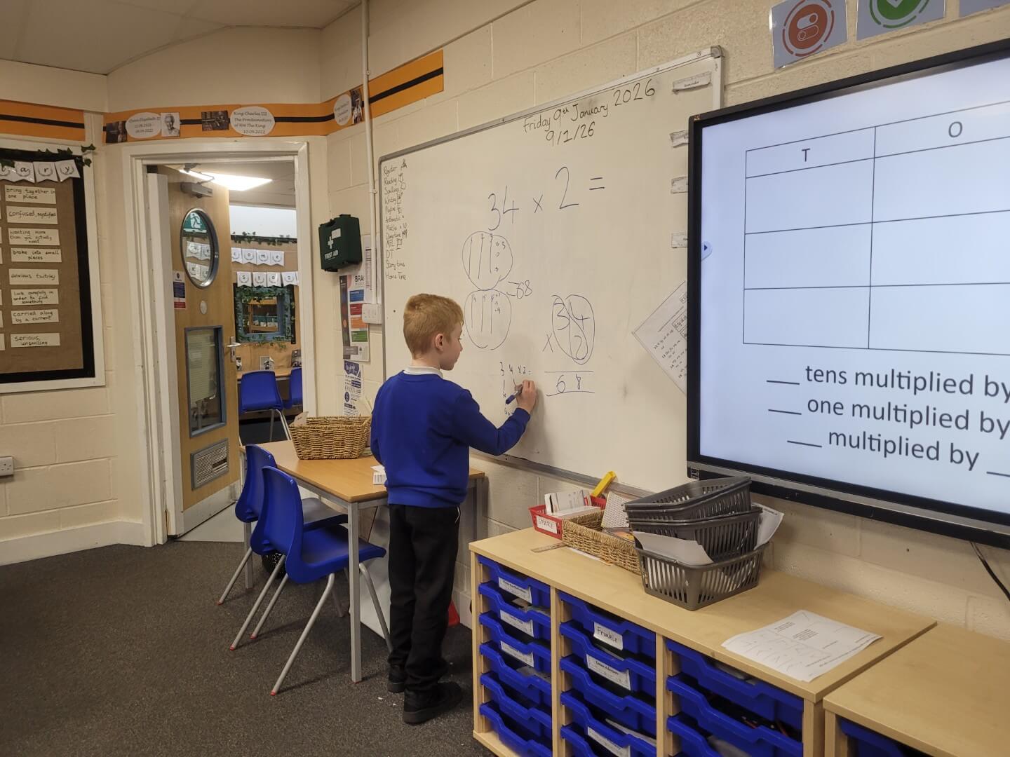 During their first week back, Year 3 have been busy developing their multiplication skills by working with two-digit numbers multiplied by one-digit numbers. The children approached the challenge with focus and enthusiasm, using a range of strategies to help them solve the calculations accurately. It was great to see such confidence and perseverance so early in the term.