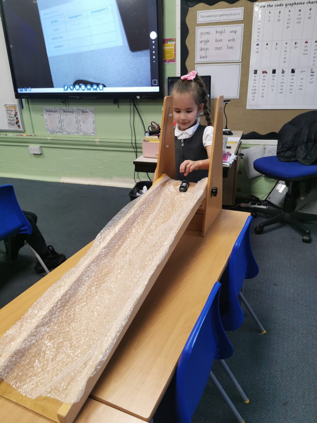 This half term in Science, Year 2 have been learning all about forces. As part of their learning, they carried out a fair test to investigate how a toy car travels across different surfaces.