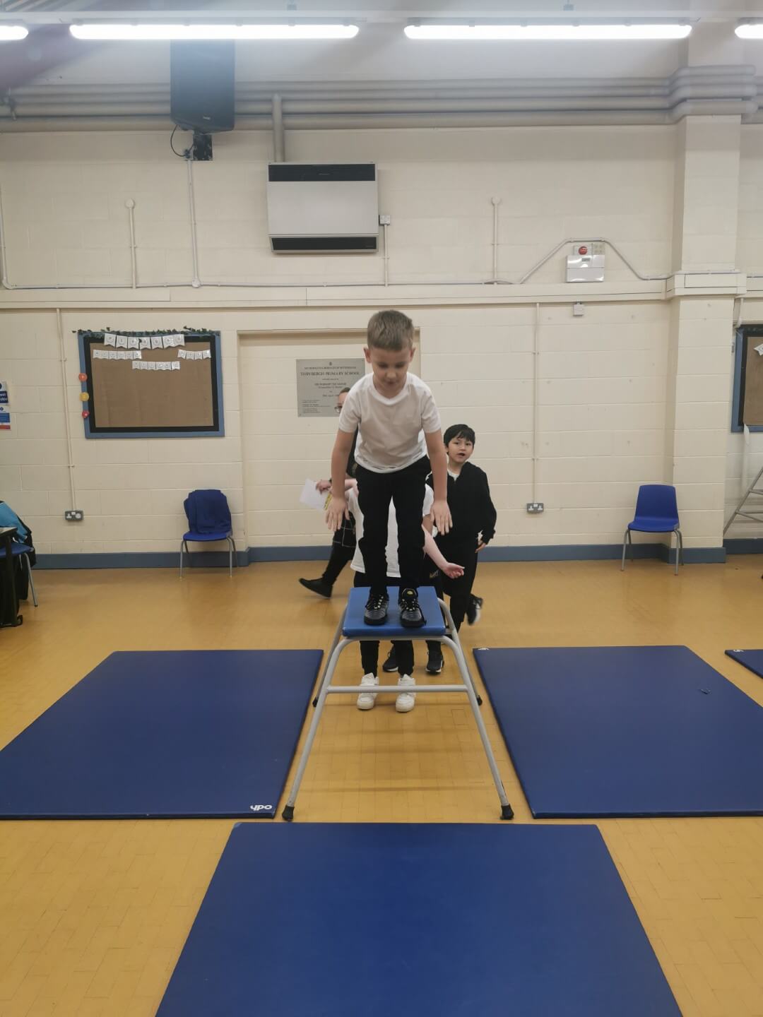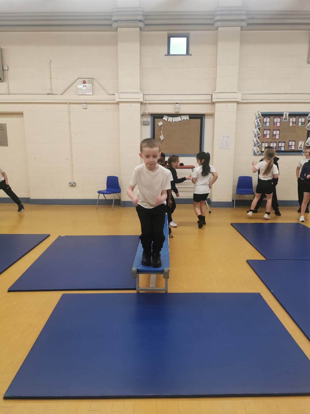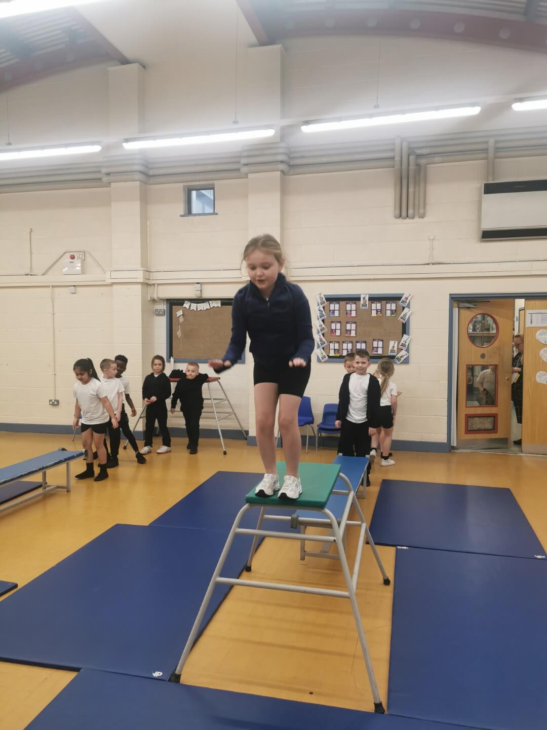 The children also practised jumping, learning how to take off and land safely with bent knees and good balance. Throughout the lesson, pupils were encouraged to move confidently, follow safety rules, and support one another. This helped them develop their gymnastic skills as well as their confidence when using the equipment. Well done, Y2!