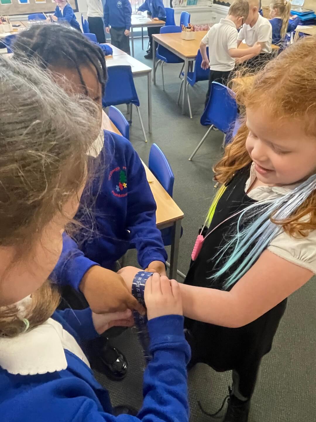 This week, Year 1 have been exploring how to measure length. Yesterday, they particularly enjoyed using tape measures to compare the size of their arms, heads and ankles.