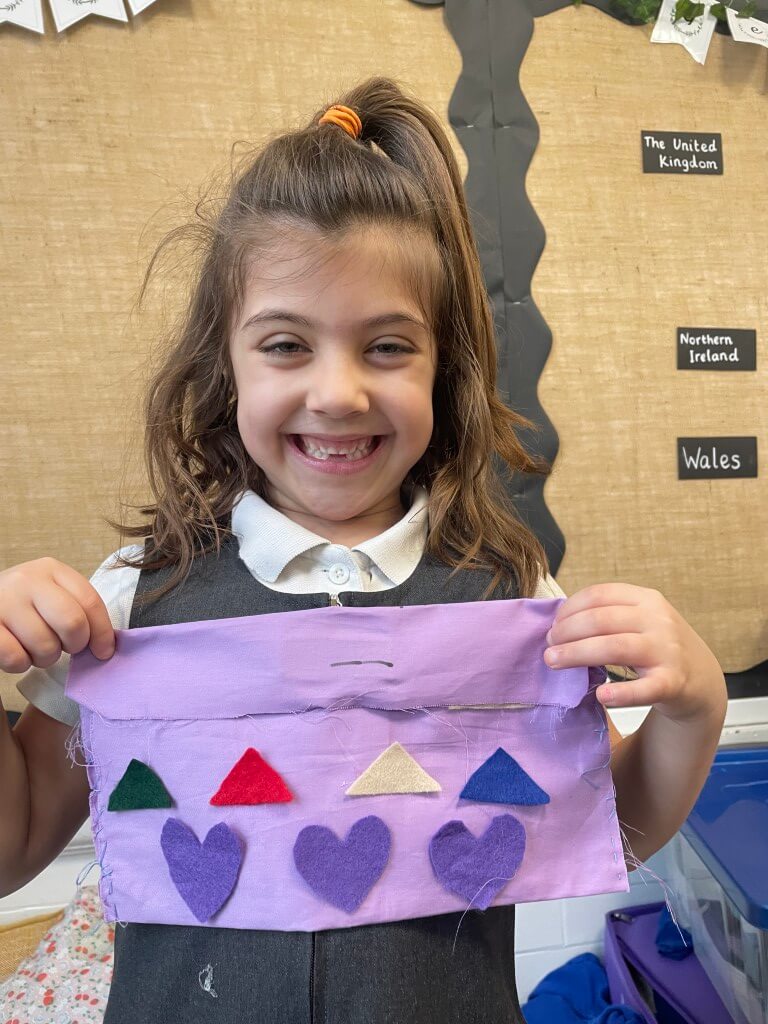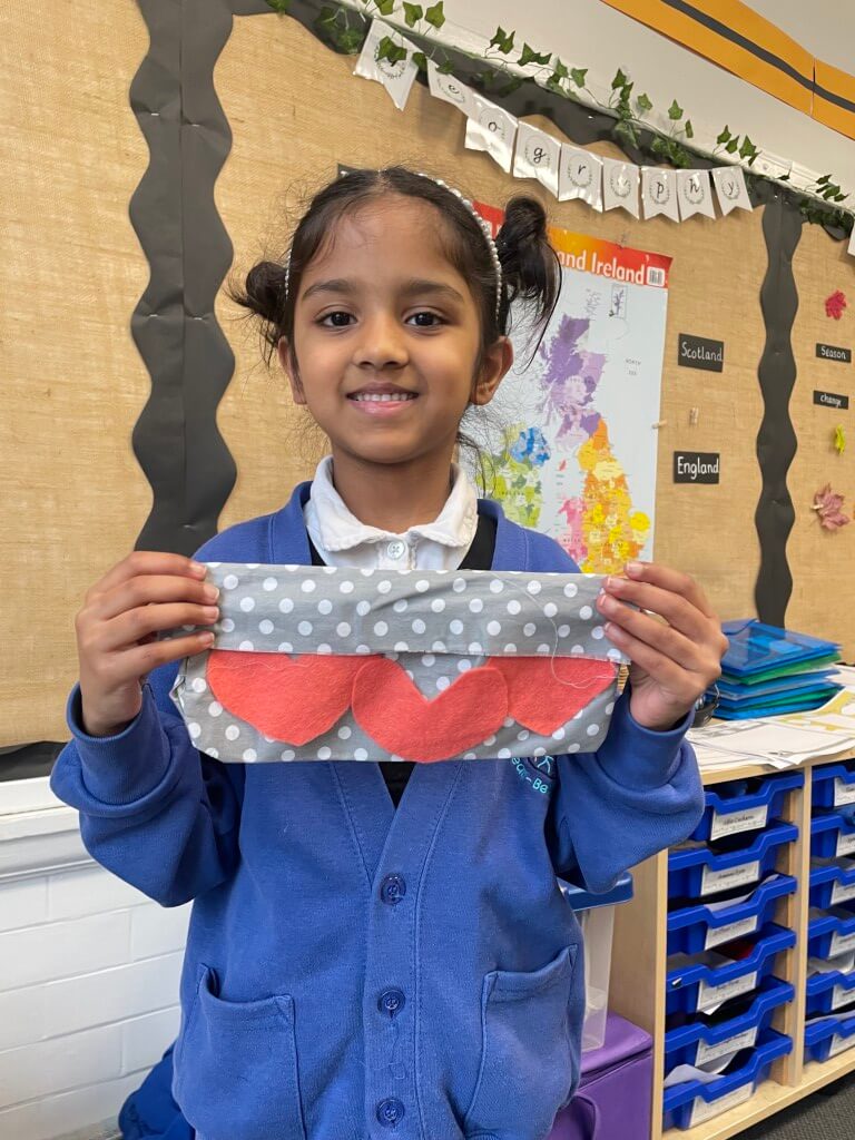 This half term, Year 1 have been busy designers! Their challenge was to design and make a pencil case from recycled fabric. Each pencil case needed to be the right size to hold 10 pencils, fastened with Velcro, and decorated using scrap fabric.