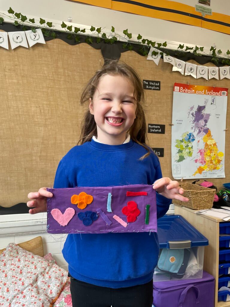 Sewing can be tricky, but the children persevered and worked hard to complete their designs. Just look at how proud they are of their finished products – a fantastic effort from everyone!