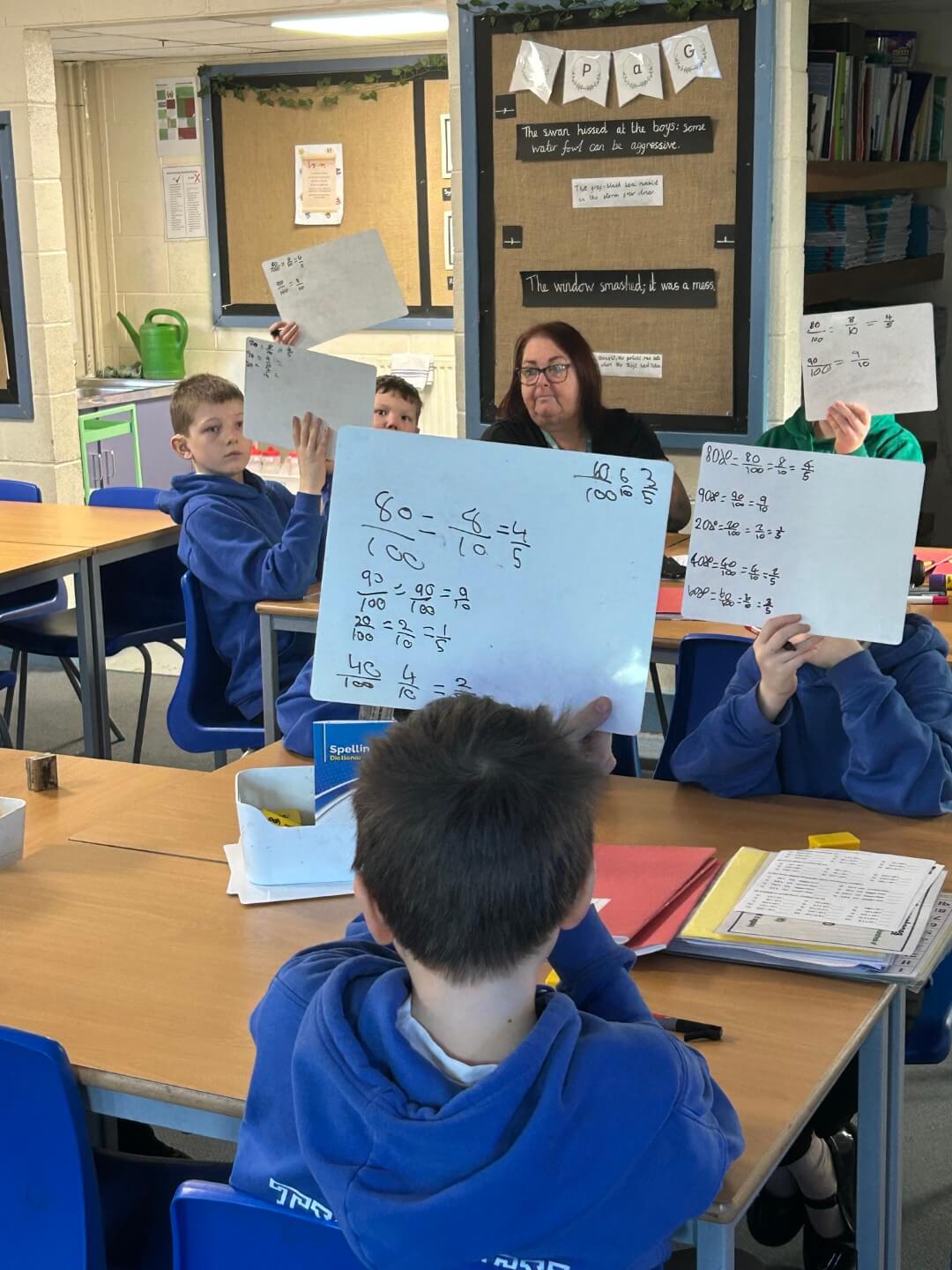 This week in Maths, Year 6 have been learning about the equivalence between fractions, decimals, and percentages. Some facts are easier to remember – for example, ½ is the same as 0.5 and 50%.