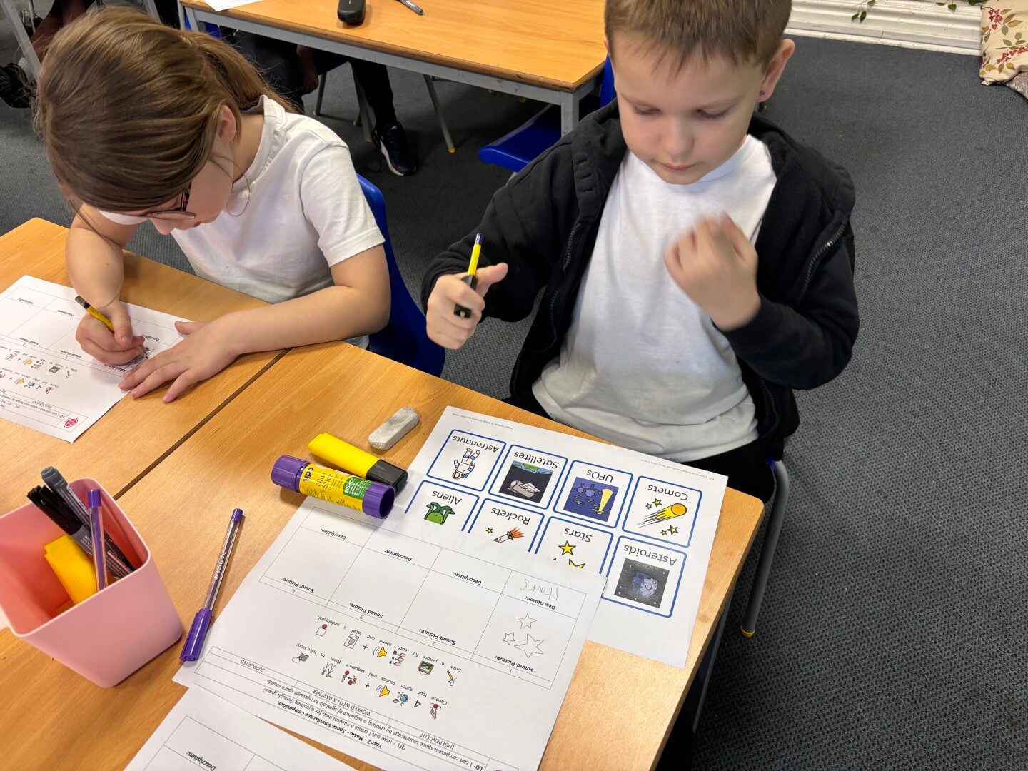They then recorded their ideas using symbols to create a graphic score, combining creativity and musical understanding to bring their space-themed composition to life. Well done!